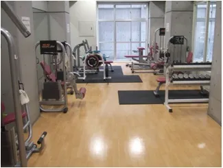 トレーニングルームには、各種トレーニング機器がそろっており、